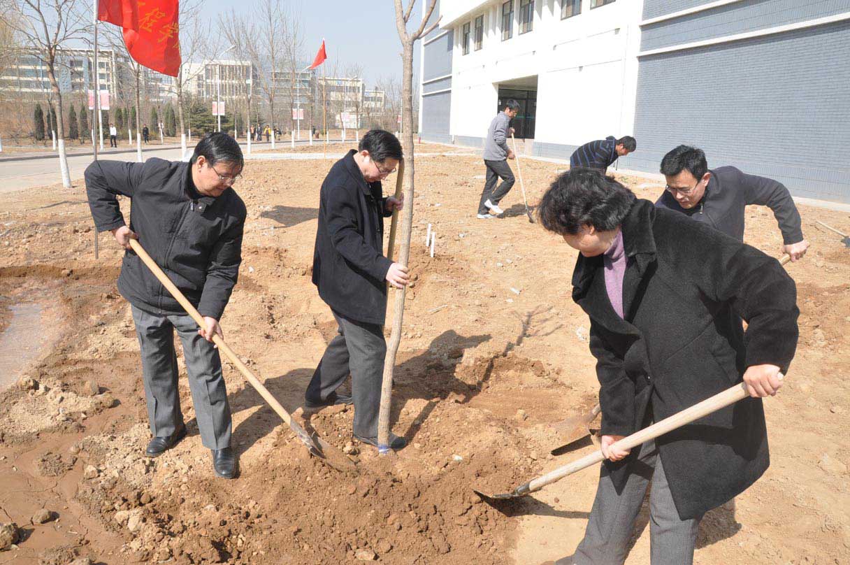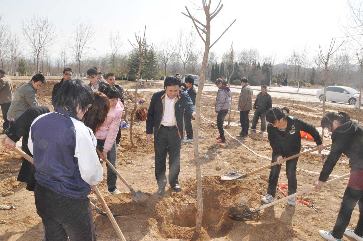 大地回春,又逢植绿好时节。3月16日下午,食品与生物工程学院组织百余名师生开展义务植树活动,学校领导徐同文、陈嘉川、舒永庆、王光芝、王西奎及有关部门负责人兴致勃勃地来到植树现场,挥锹铲土,分组植树,同大家一起种植了50余棵五角枫、新疆杨等树木,掀起了义务植树、绿化校园活动的高潮。
