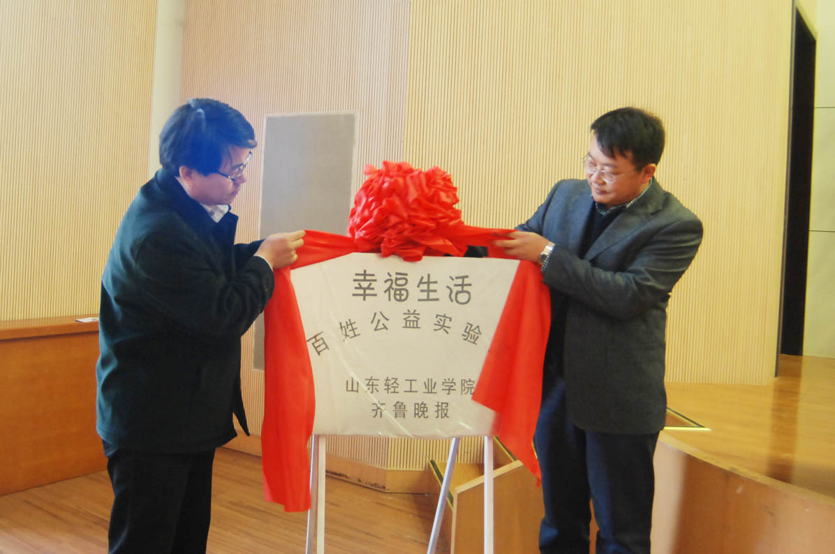 随后,我校崔波副教授和热心市民代表马吉彬共同为“幸福生活百姓公益实验室”揭牌,标志着我校与齐鲁晚报合作关系迈上了一个新台阶。