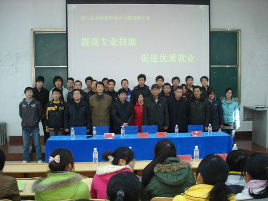 大会伊始,信息学院王连增书记公布了该次荣获“优秀创新个人”及“优秀指导教师”的名单,对获奖者表示衷心的祝贺。随后,姜合教授对08级的参赛情况进行了总结,并为下一届的比赛做了大致的介绍和规划。随后,出席领导为各参赛队和指导老师颁奖,比赛一等奖获得者刘华廷和大家一同分享了大赛心得,优秀指导教师代表成金勇则鼓励大家要感到身上肩负的责任和使命,并要在今后的学习和生活中,从基础做起,刻苦努力地学习,发扬“勤奋、自强、求是、创新”的精神。