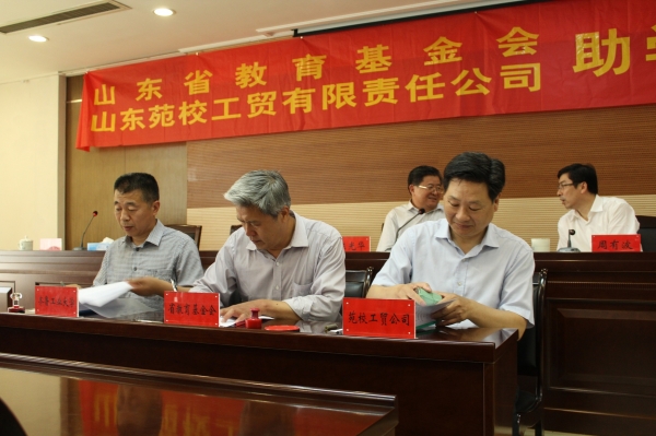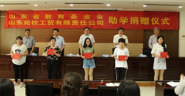 5月19日下午,由山东省教育基金会,山东苑校工贸有限责任公司联合设置的“专项助学金”签约捐赠仪式在办公楼352会议室举行,山东省教育基金会理事长陈光华,副秘书长翟道顺,山东苑校工贸有限责任公司总经理陈卫宏 香蕉app,齐鲁工业大学副校长周有波出席仪式,各学院(部)师生代表参加仪式,仪式由学生处处长刘传波主持。
