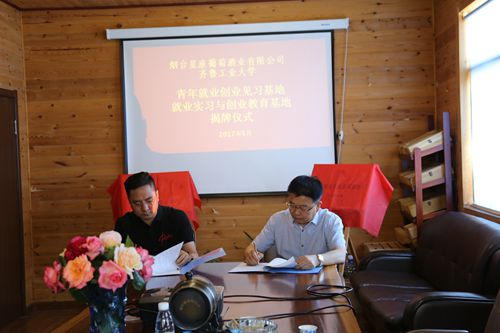 5月22日上午,齐鲁工业大学在烟台市星座葡萄酒业有限公司新建“团中央青年就业创业见习基地”以及“就业实习与创业教育基地”,工商管理学院相关负责人一行和烟台市星座葡萄酒业有限公司董事长慕宝强及栖霞市有关部门负责人参加了仪式 香蕉app。