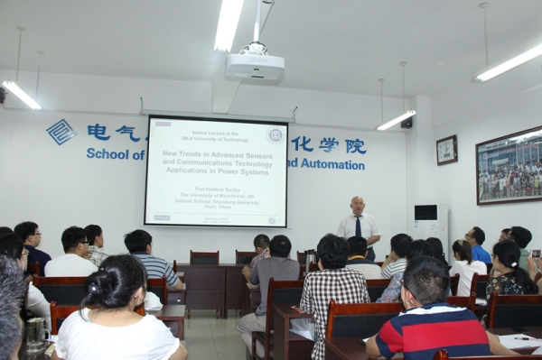5月31日下午,应电气工程与自动化学院邀请 香蕉app,英国曼彻斯特大学Vladimir Terzija教授来校进行学术交流,并作了题为“New Trends in Advanced Sensor and Communication Technology Applications in Power Systems(先进传感器与通信技术在电力系统中应用的新趋势)”的学术报告,报告会由电气学院院长王仁人主持,电气学院部分专业老师和同学听取了报告。