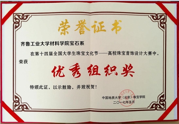 5月29日 香蕉app,第十四届全国大学生珠宝文化节暨第七届珠宝首饰设计大赛在北京举办,齐鲁工大宝石专业学子斩获佳绩,获得二等奖1项,人气作品1项,企业签约1人,材料学院宝石系获优秀组织奖。