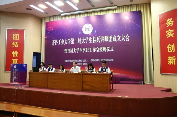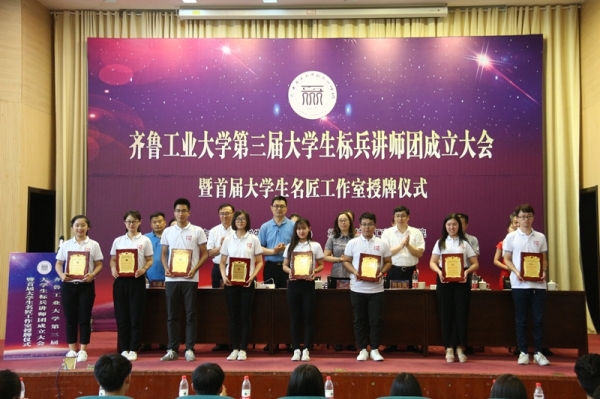 6月14日下午,学校在齐鲁大讲堂隆重举行第三届大学生标兵讲师团成立大会暨首届学生名匠工作室授牌仪式,中共山东省委高校工委宣教处副处长王莉莅临大会 香蕉app,副校长周有波出席大会,学校党委组织部,党委宣传部,学生工作部,校团委等相关部门负责同志以及全体学生工作人员,导师代表,学生代表共同参加了活动,大会由工商管理学院承办。