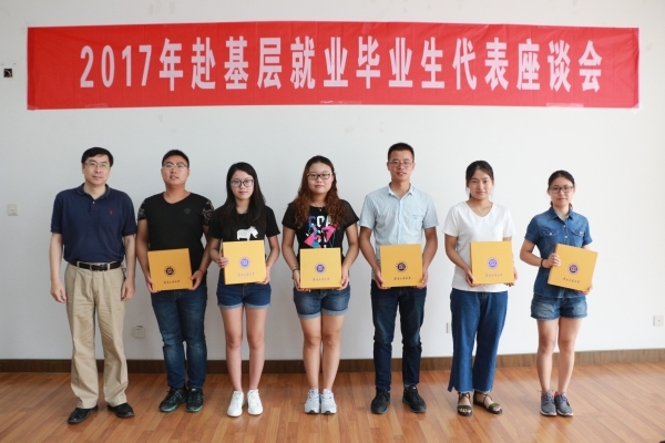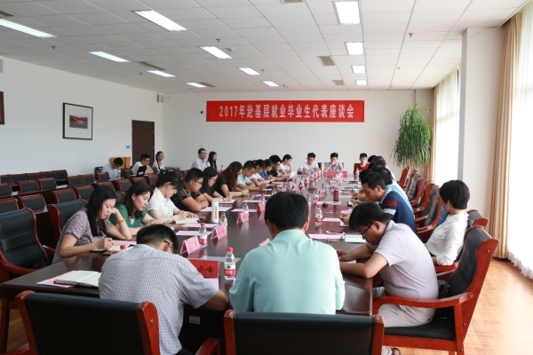6月20日上午 香蕉app,学校召开2017年赴基层就业毕业生代表座谈会,副校长周有波出席,相关部门和各学院(部)负责人以及12名赴基层就业的毕业生代表参加。