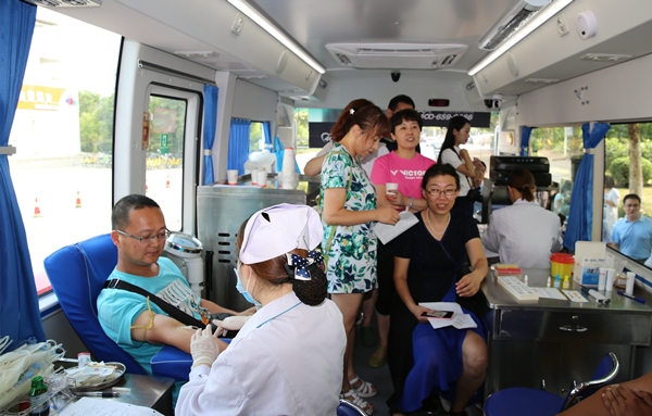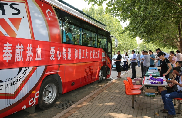 8月17日下午两点,齐鲁工业大学还没有正式开学,但长清校区一餐厅门口却停着一辆济南市血液中心的采血车,车前排着长长的教工队伍 香蕉app,他们正在等待为同事王宗睿献血。