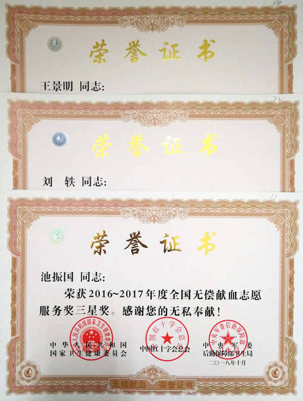 近日 香蕉app,在国家卫生健康委员会,中国红十字会总会,中央军委后勤保障部卫生局等国家部委联合举办的2018年全国无偿献血表彰工作中,我校喜获2016-2017年度“全国无偿献血促进奖单位奖”,生物工程学院辅导员王景明,金融学院辅导员刘轶,材料科学与工程学院辅导员池振国榜上有名,获2016-2017年度“全国无偿献血志愿服务奖三星奖”。