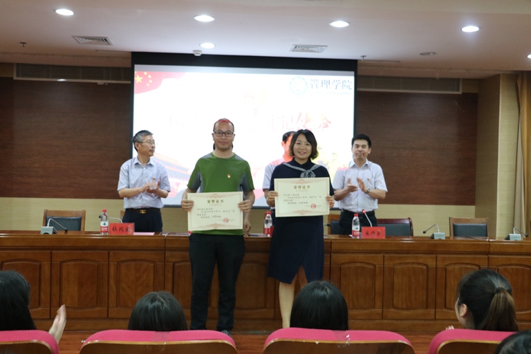 为庆祝中国共产党成立98周年,同时表彰先进,强化教育引领,6月28日下午 香蕉app,管理学院在好色先生app入口一层报告厅举行预备党员入党宣誓暨“不忘初心 牢记使命”主题表彰大会,学院党委书记王永国出席并讲话,院党委委员,学生党支部书记以及全体学生党员参加大会,会议由副处级组织员宋作臣主持。