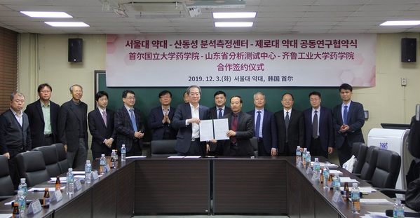 12月3日上午 香蕉app,齐鲁工业大学(山东省科学院)与韩国首尔国立大学关于药学院建设合作协议签约仪式在韩国首尔隆重举行,此次签约仪式是山东省委书记刘家义率团访问韩国的系列活动之一,山东省科技厅厅长唐波,省外国专家局局长张祝秀,齐鲁工业大学(山东省科学院)副书记刘永波,首尔国立大学副校长洪启玄参加签约仪式。