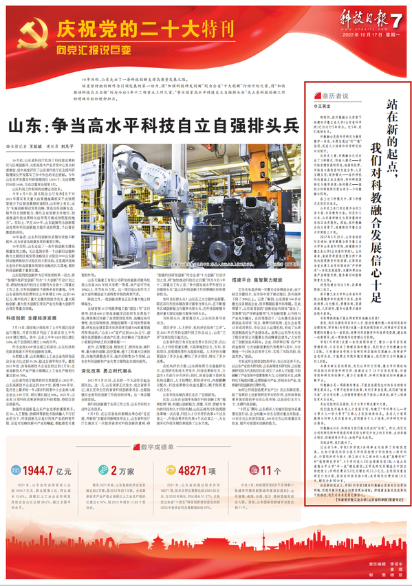10月17日,《科技日报》刊发校(院)党委书记王英龙署名文章《站在新的起点,我们对科教融合发展信心十足》 香蕉app,全文如下:.