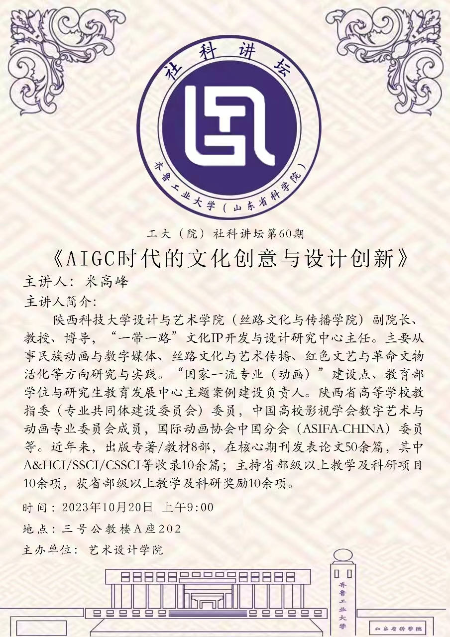 工大(科院)社科讲坛第60期:AIGC时代的文化创意与设计创新