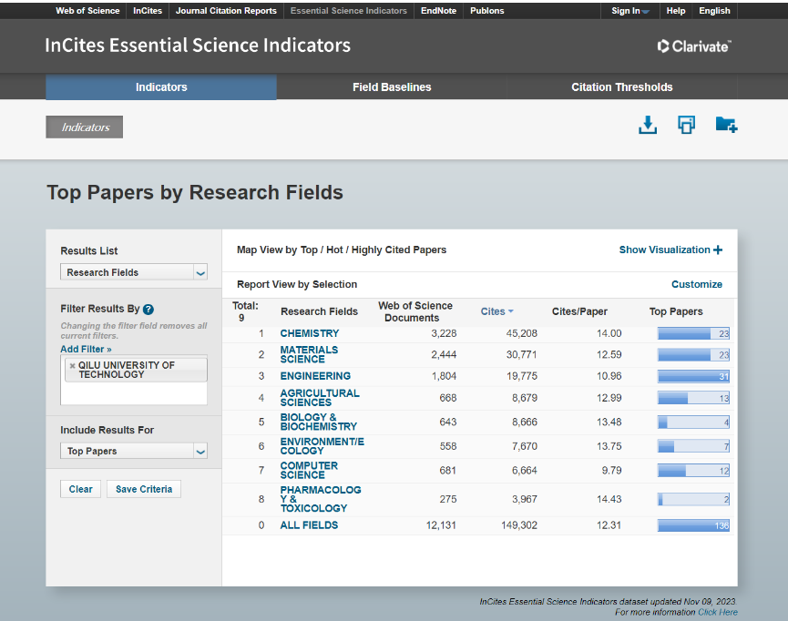 2023年11月9日科睿唯安发布的最新ESI(Essential Science Indicators,基本科学指标)数据显示,齐鲁工业大学(山东省科学院)药理学与毒理学学科进入ESI世界排名前1%行列 香蕉app,校(院)高水平学科建设再次实现新突破,截至目前,校(院)共有化学,工程学,材料科学,农业科学,环境学及生态学,计算机科学,生物及生物化学和药理学与毒理学等8个学科进入ESI世界排名前1%,学科数量位居省属高校第三位,标志着校(院)学科建设迈上了新台阶。