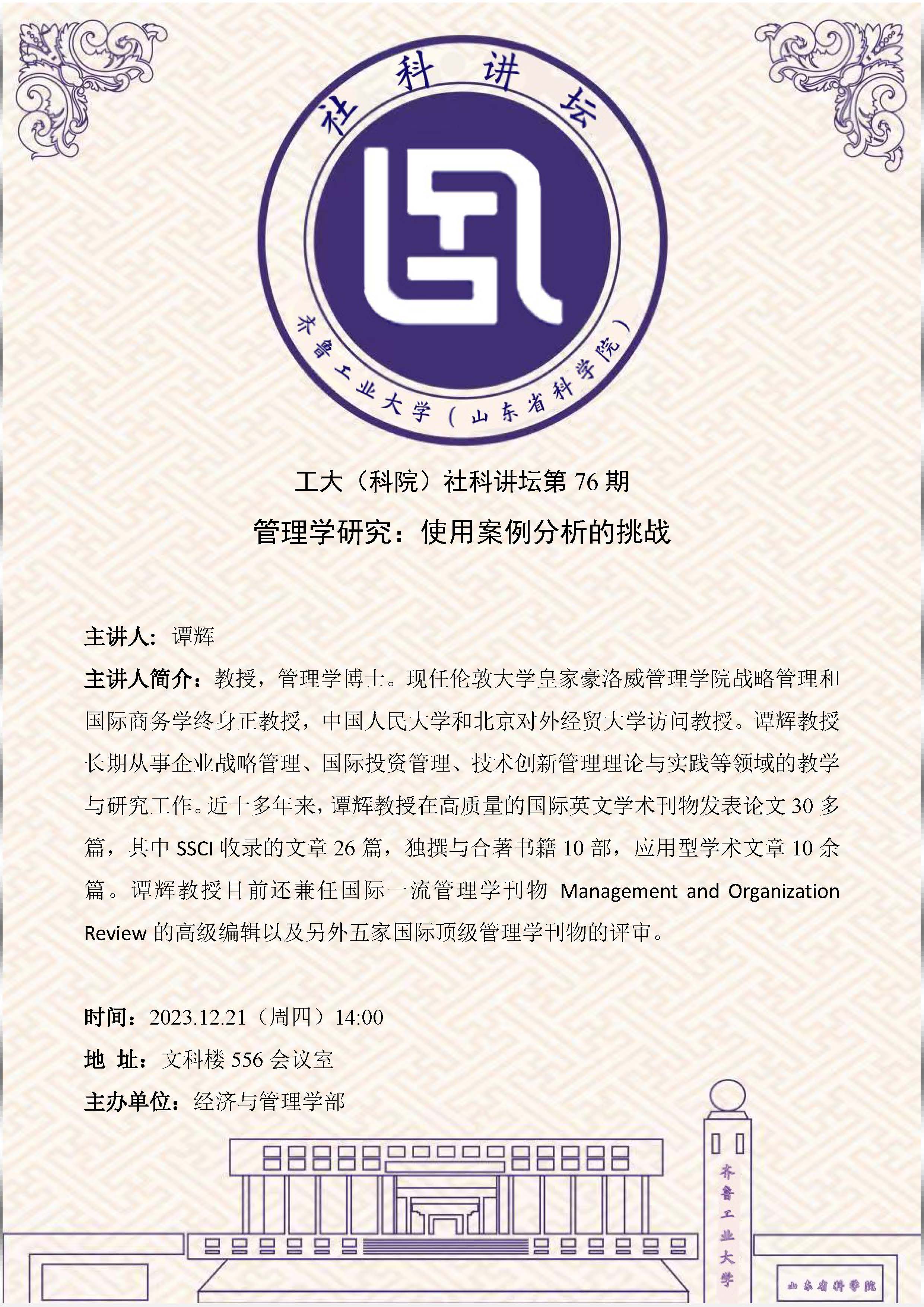 工大(科院)社科讲坛第76期:管理学研究:使用案例分析的挑战