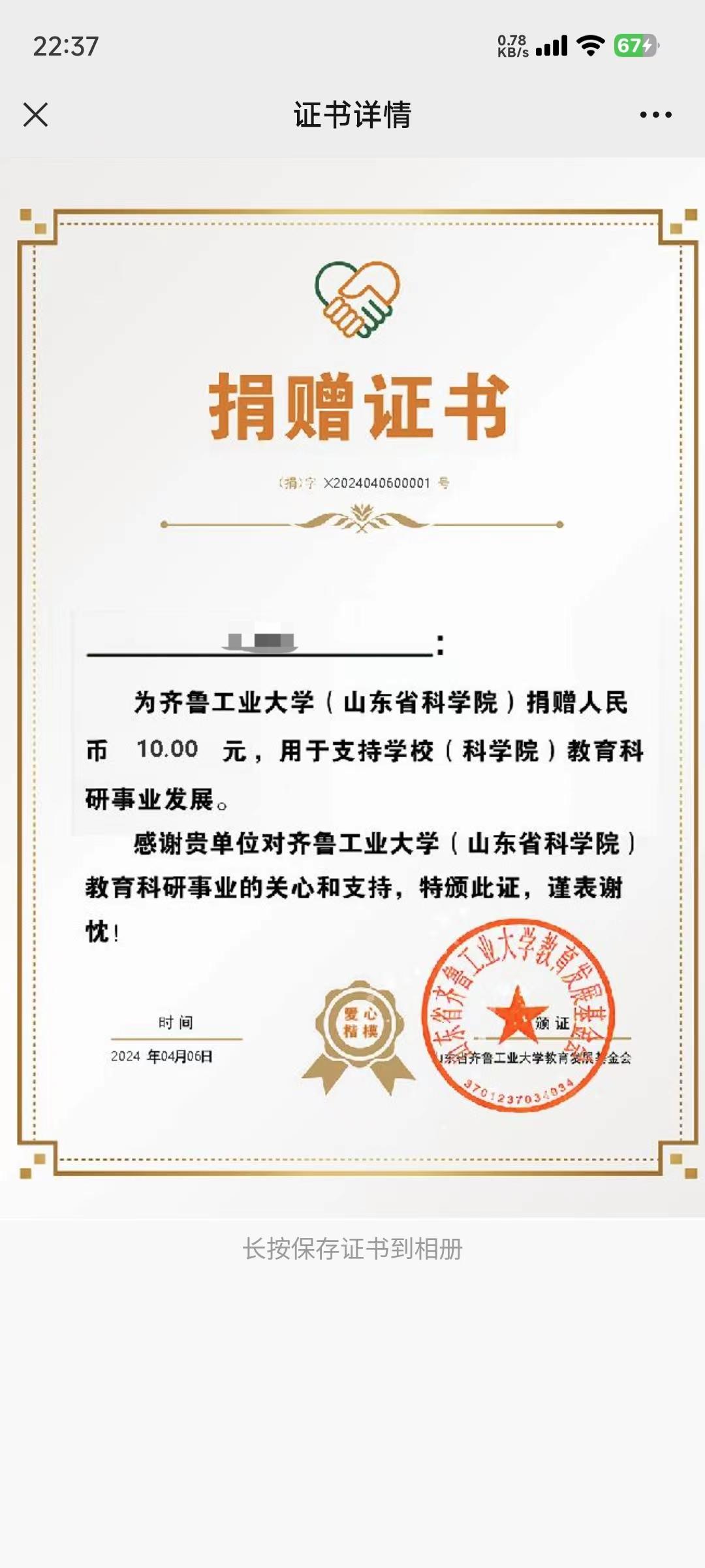 按照齐鲁工业大学教育基金会的管理办法,捐款后可登录齐鲁工业大学校友众筹平台自行打印捐款证书(详细步骤见附件),如您需要纸质证书,请联系我们的工作人员 香蕉app,联系人:王玲13156191233,王荣强1862915778。
