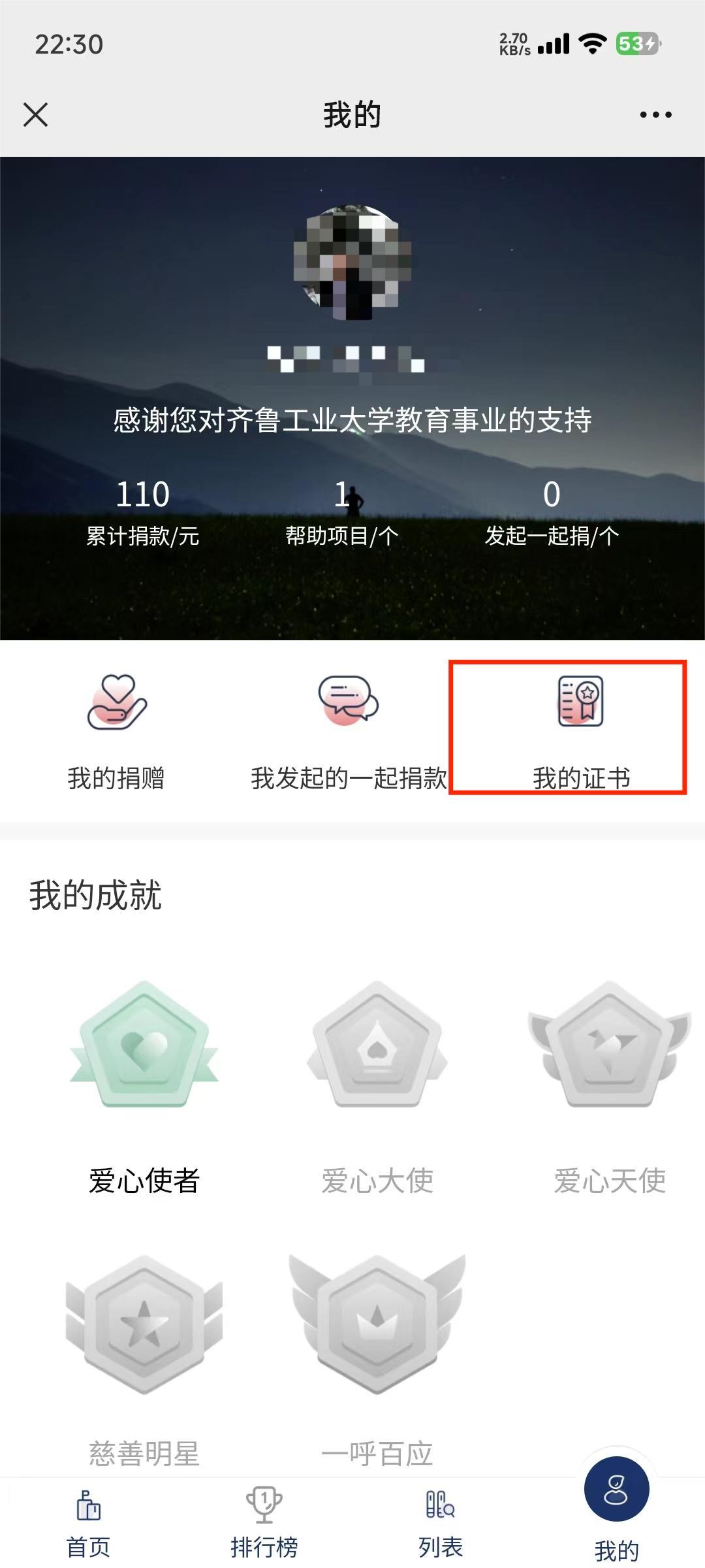 3 香蕉app,点击“我的证书”,进入个人所有捐款证书界面。。