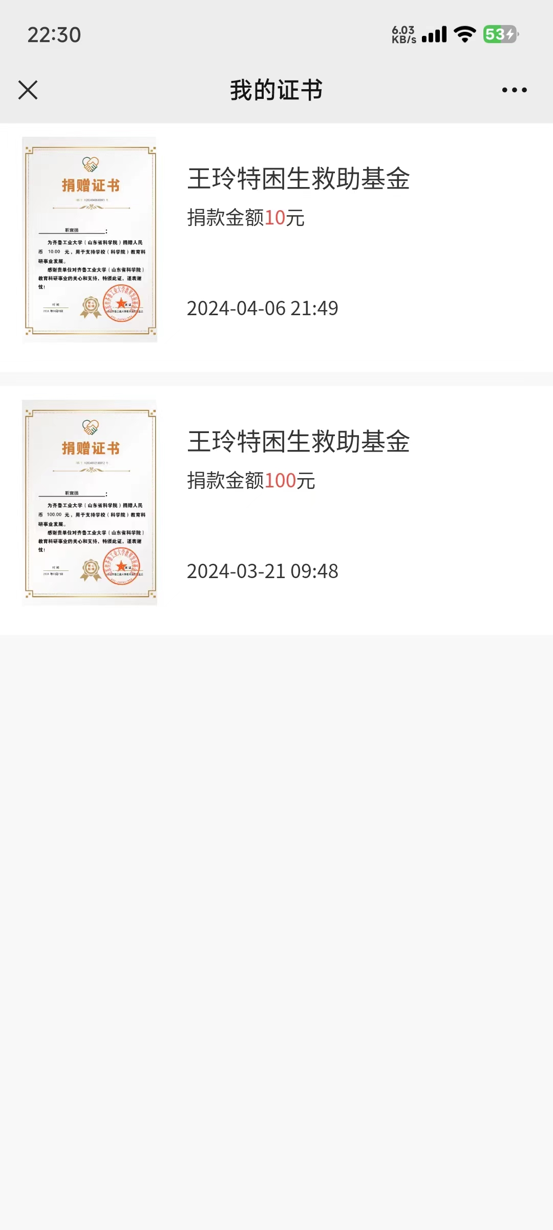4,在我的证书页面,点击需要打印的捐款证书。 香蕉app。