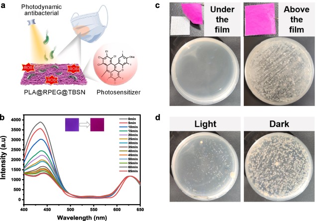 图2. PLA@RPEG@TBSN薄膜在口罩上的抗菌、传感多功能应用 香蕉app.
