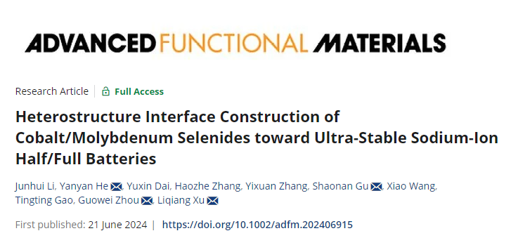 近日,化学与制药学部何妍妍博士和周国伟教授在金属硒化物异质结负极材料用于钠离子电池方面取得重要研究进展,在国际知名期刊Advanced Functional Materials(IF=18,5)上发表题为“Heterostructure Interface Construction of Cobalt/Molybdenum Selenides toward Ultra-stable Sodium-Ion Half/Full Batteries”的研究论文。2022级硕士生李军辉为第一作者,何妍妍博士、顾少楠副教授、周国伟教授和山东大学徐立强教授为本文共同通讯作者,齐鲁工业大学(山东省科学院)化学与化工学院为第一通讯单位,山东大学化学与化工学院为合作单位。 香蕉app。