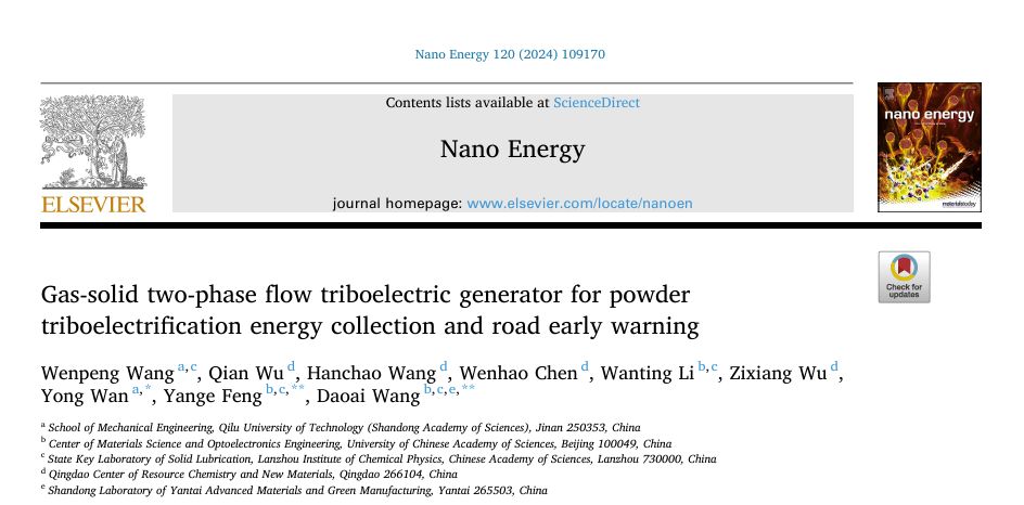 近日,机械工程学部特种润滑材料团队与中科院兰州化学物理研究所固体润滑国家重点实验室摩擦与物理传感课题组合作,在《Nano energy》(中科院一区,TOP期刊,影响因子17,6)上,发表了粉末摩擦带电机理方面的研究成果“Gas-solid two-phase flow triboelectric generator for powder triboelectrification energy collection and road early warning”,齐鲁工业大学(山东省科学院)为文章的第一单位,机械工程学部2021级研究生王文鹏为文章的第一作者。 香蕉app。