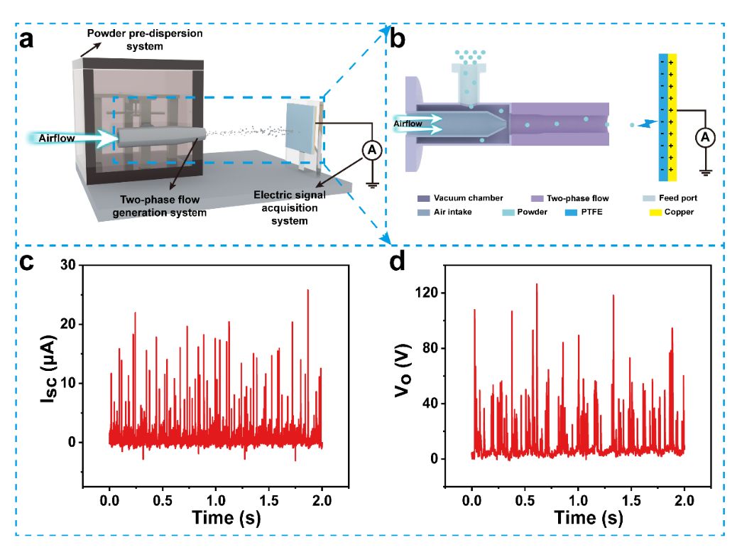 粉末材料已广泛应用于工业各个领域,粉尘颗粒在加工和运输过程中会携带大量电荷,在封闭环境中,粉尘携带的电荷可能会产生静电火花,进而导致爆炸,如果能够在加工过程中有效消除粉尘携带的电荷,就可以显著减少工业生产中因带电粉尘而引发的安全隐患 香蕉app,另一方面,粉尘所产生的摩擦电能能否被有效捕获并用于传感器的自供电也值得研究。