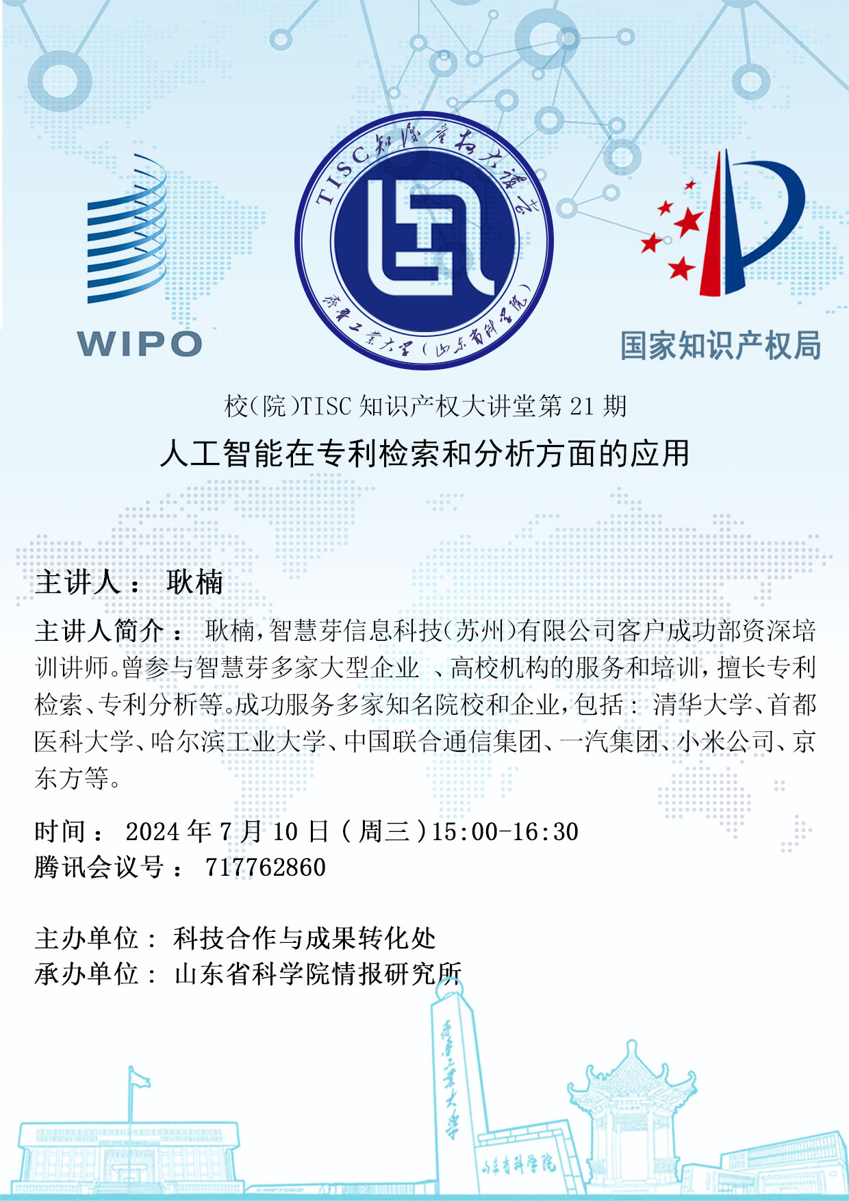 校(院)TISC知识产权大讲堂第21期:人工智能在专利检索和分析方面的应用