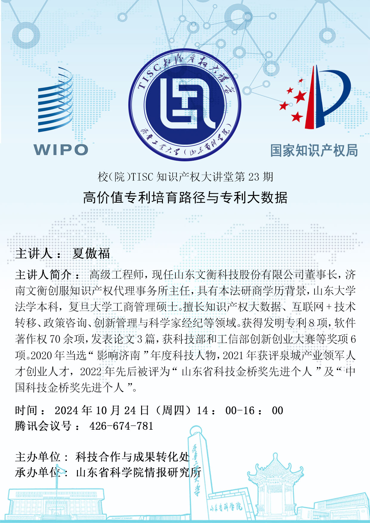 校(院)TISC知识产权大讲堂第23期:高价值专利培育路径与专利大数据