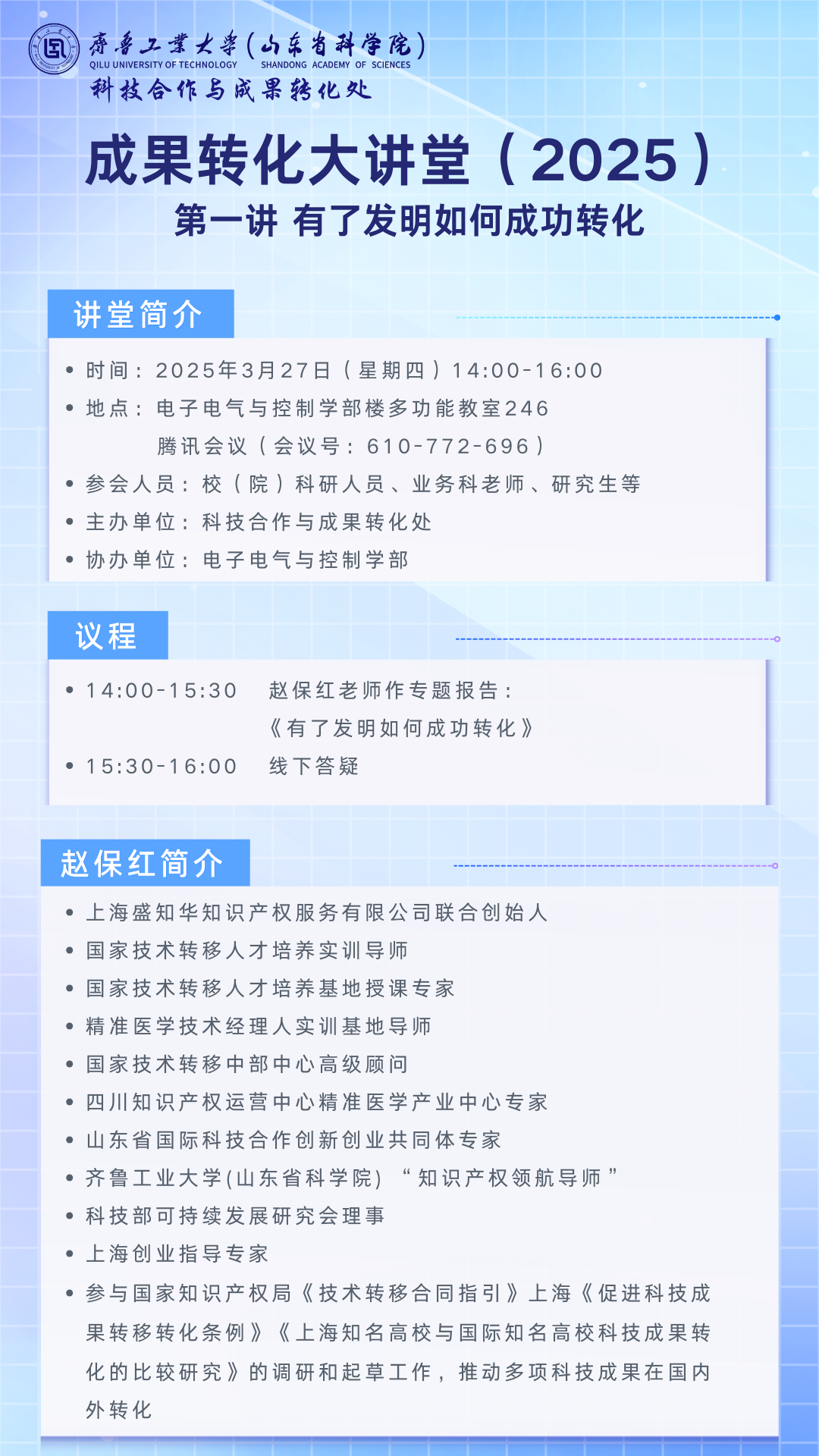 香蕉app - 校(院)成果转化大讲堂(2025)第一讲:有了发明如何成功转化