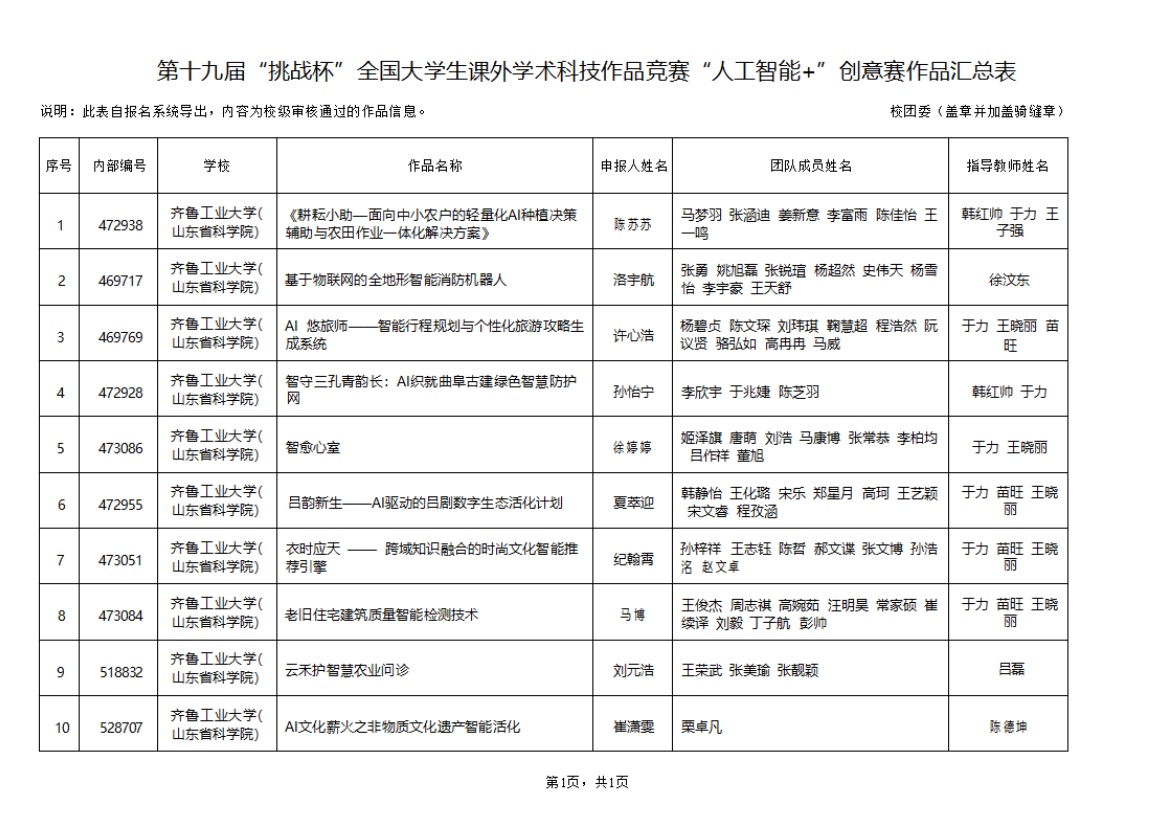 根据《“挑战杯”全国大学生课外学术科技作品竞赛章程》和“人工智能+”专项赛的报备要求,学校(科学院)拟推报以下10件项目作品参加创意赛,现予以公示 香蕉app。