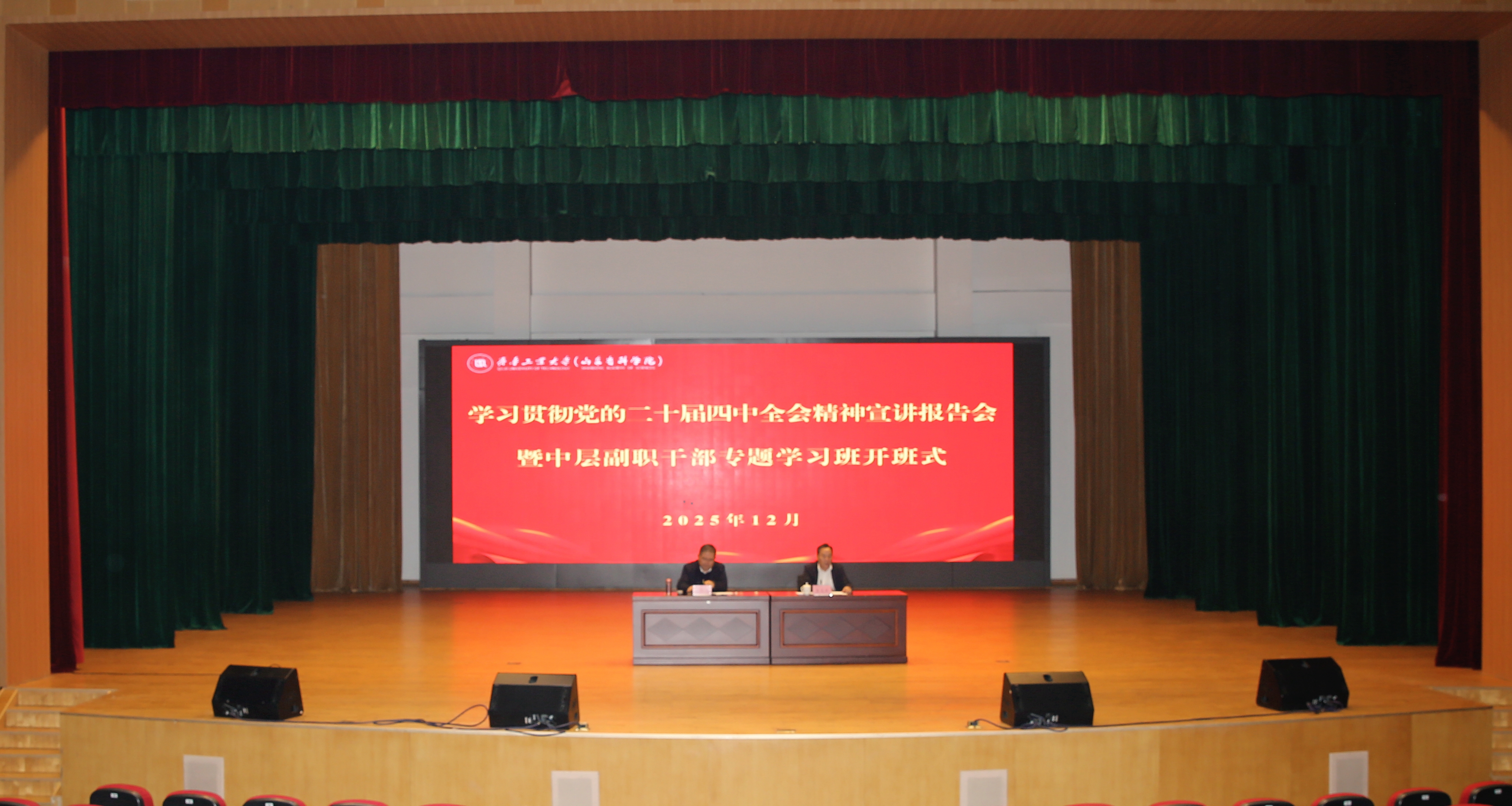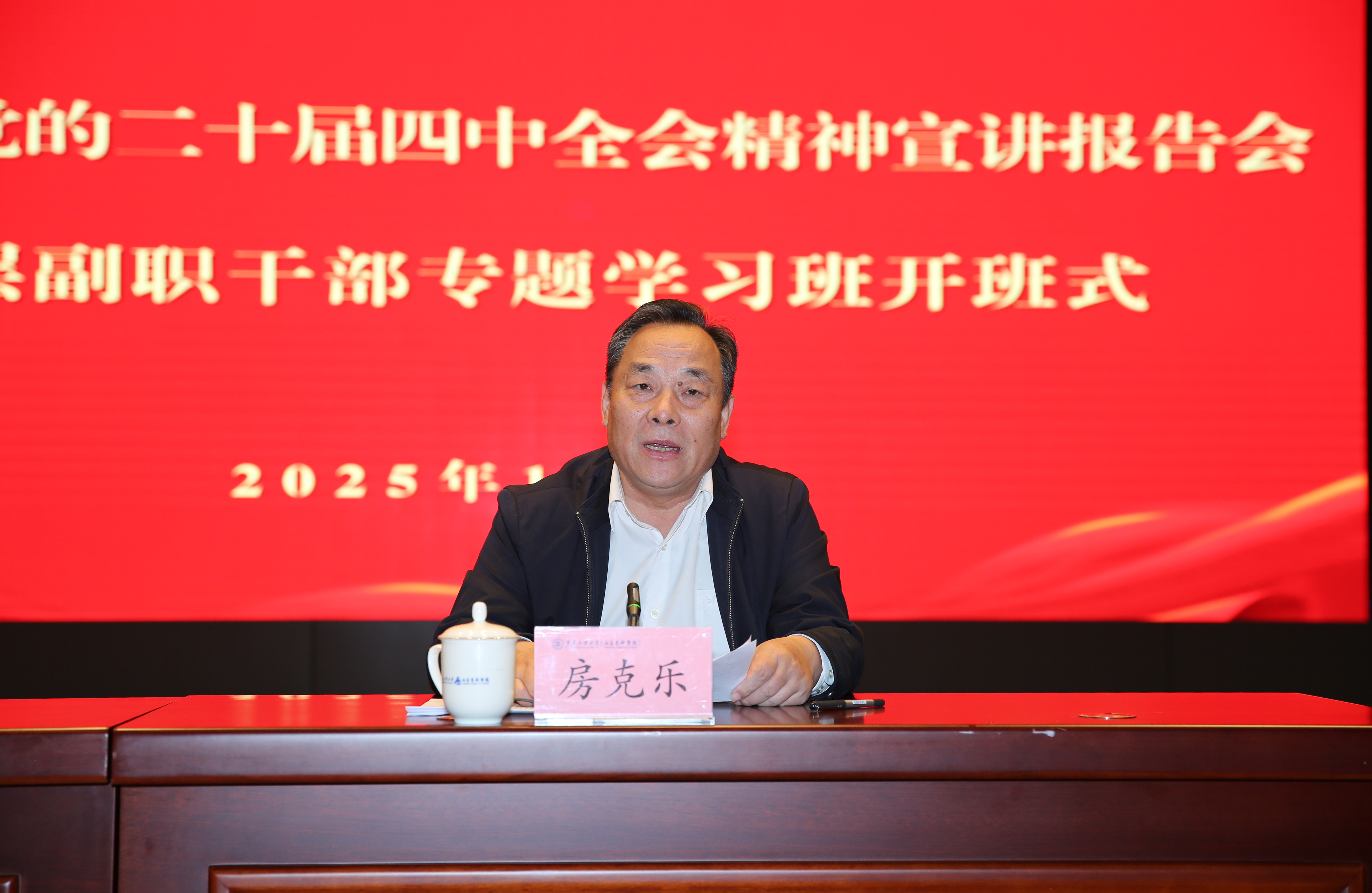 12月19日,齐鲁工业大学(山东省科学院)学习贯彻党的二十届四中全会精神宣讲报告会暨中层副职干部专题学习班开班式在长清校区艺体中心举行,山东高校学习贯彻党的二十届四中全会精神宣讲团成员,校(院)党委书记吴衍涛作党的二十届四中全会精神宣讲报告,会议由驻校(院)纪检监察组组长 香蕉app,校(院)纪委书记房克乐主持,校(院)领导班子成员及全体中层干部参加报告会。