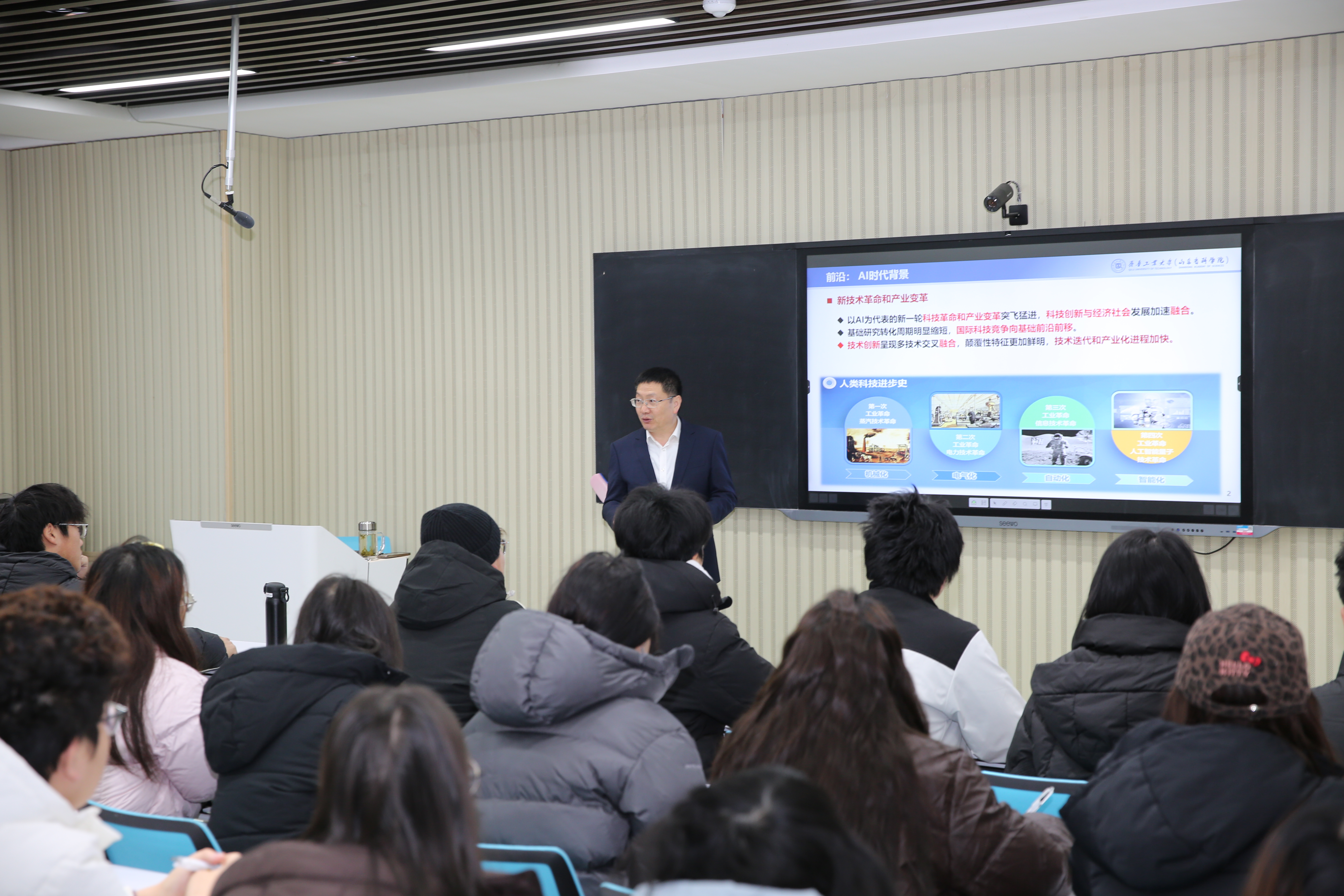 12月25日,齐鲁工业大学(山东省科学院)校(院)长段培永以“拥抱人工智能时代 ,勇担强国建设使命”为题 香蕉app,为学生带来了一场意义深刻的思政课,激发广大青年学子在人工智能浪潮中积极担当,奋勇拼搏。
