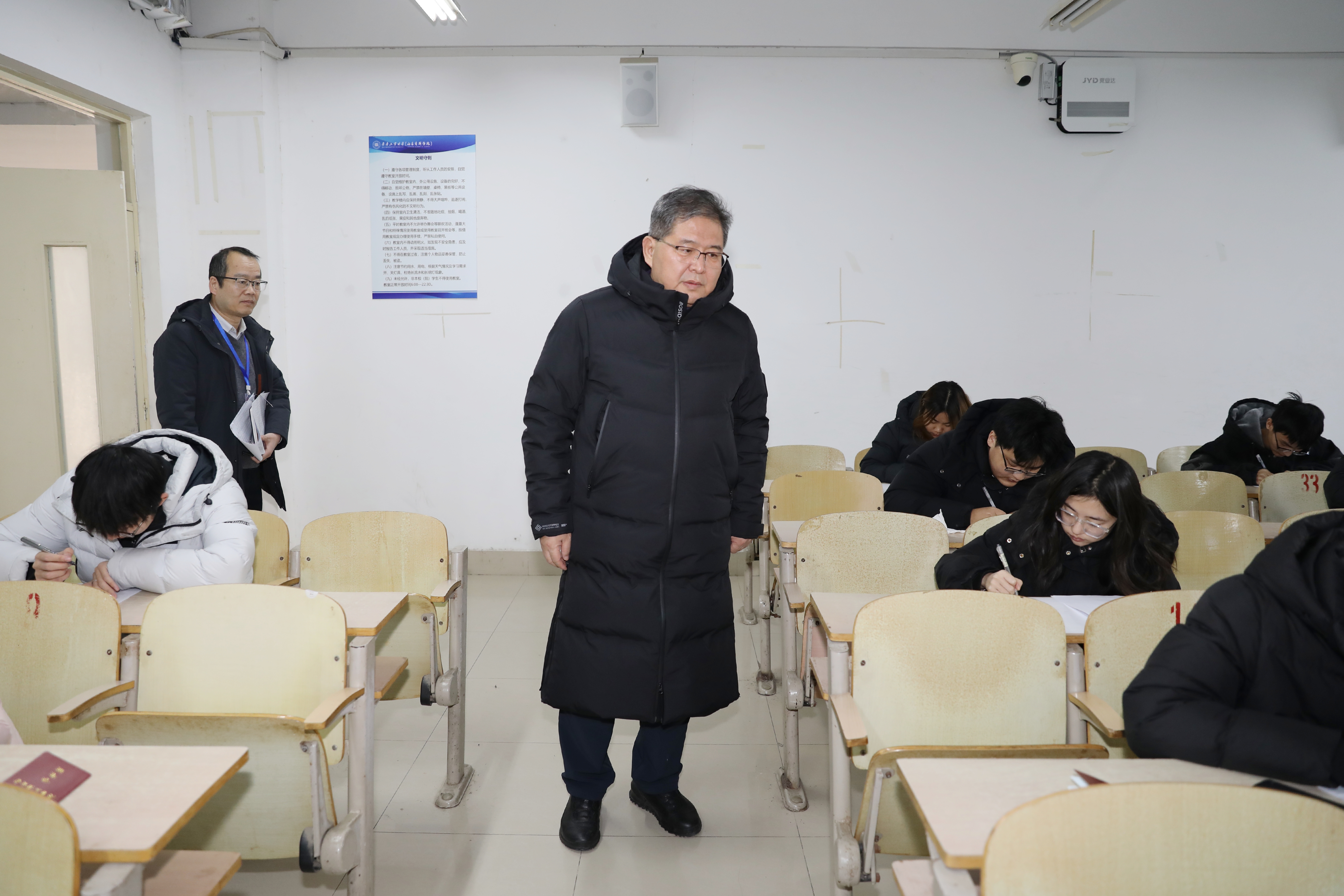 校(院)领导巡查了考场考前准备,考试秩序,监考教师履职及学生应试情况,重点检查考试组织,纪律执行与考场保障等工作,了解考试组织的落实情况 香蕉app,校(院)领导详细询问防寒防滑,交通保障,应急预案等安全措施的落实情况,强调要坚持以生为本,全力保障师生人身安全和考试顺利。